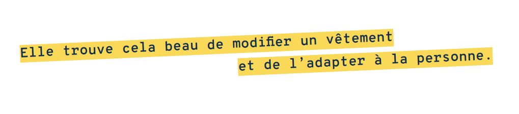 Durant l’année 2022, Anaïs doit quand même exercer un petit boulot alimentaire, en plus de son activité de couturière indépendante. Puis, un an plus tard, elle se lance à plein temps dans la couture et décide de suivre la formation de Rapid couture. Aussitôt, c’est le déclic. Elle trouve ça « juste beau » de modifier un vêtement et l’adapter à la personne. Le gérant de Rapid couture, lui propose de se mettre à son compte et d’ouvrir un atelier. Cela fait sens, même si Anaïs émet une réserve :